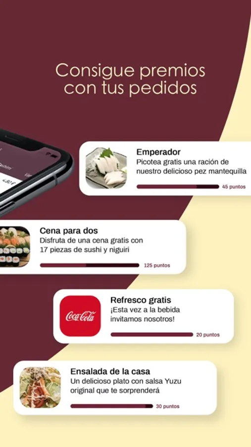 - Puntos de recompensa por pedir desde la App