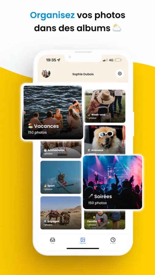 Vos photos et vidéos organisées dans des albums et sous-albums sécurisés.