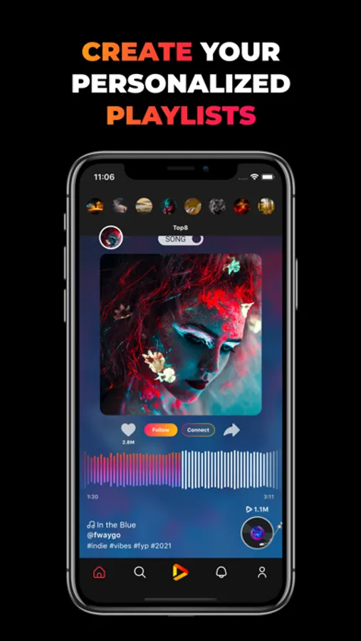 CUSTOM PLAYLIST - Follow artists on the platform to create your own feed of your favorite artists' music by liking your favorite songs.