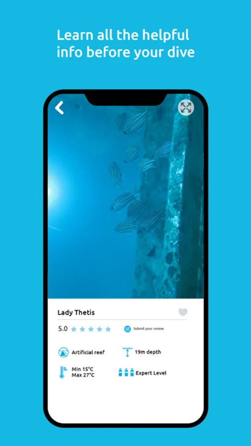 - Information about each of the diving spots (depth, difficulty, pictures, history)