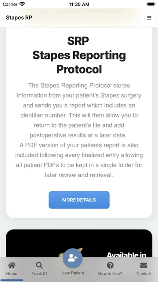 The Stapes Reporting Protocol stores information from your patient’s Stapes surgery and sends you a report which includes an identifier number. This will then allow you to return to the patient’s file and add postoperative results at a later date.