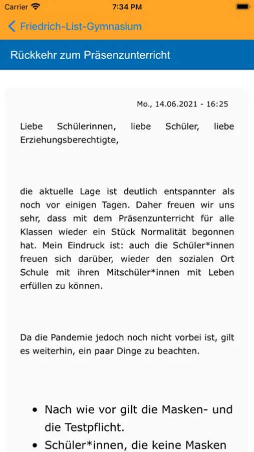 Falls eine Nachricht durch die Schule aktualisiert wird, dann erkennt das die App und stellt die gelesene Nachricht zurück auf ungelesen und an den Anfang der Liste. Falls Nachrichten veralten, werden diese gelöscht.