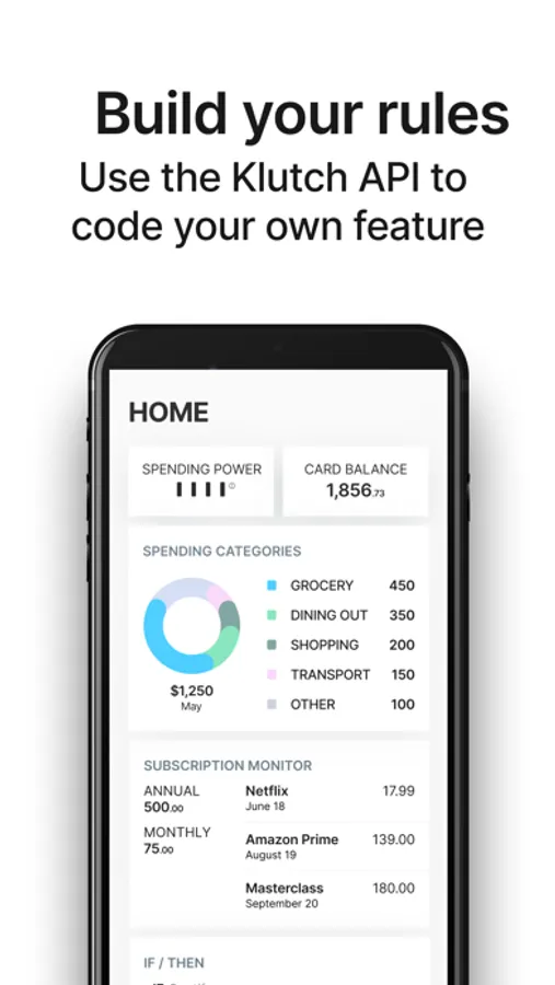 Use the Klutch App to automate your finances and life, save and spend smarter. Install the features you like to make Klutch work for you. New features are added every week. Features created by the Klutch team are all open source.