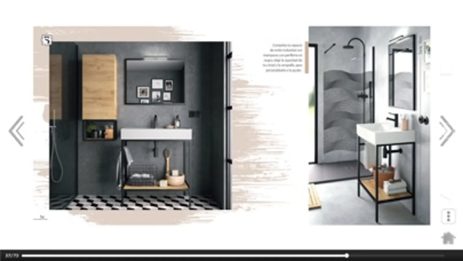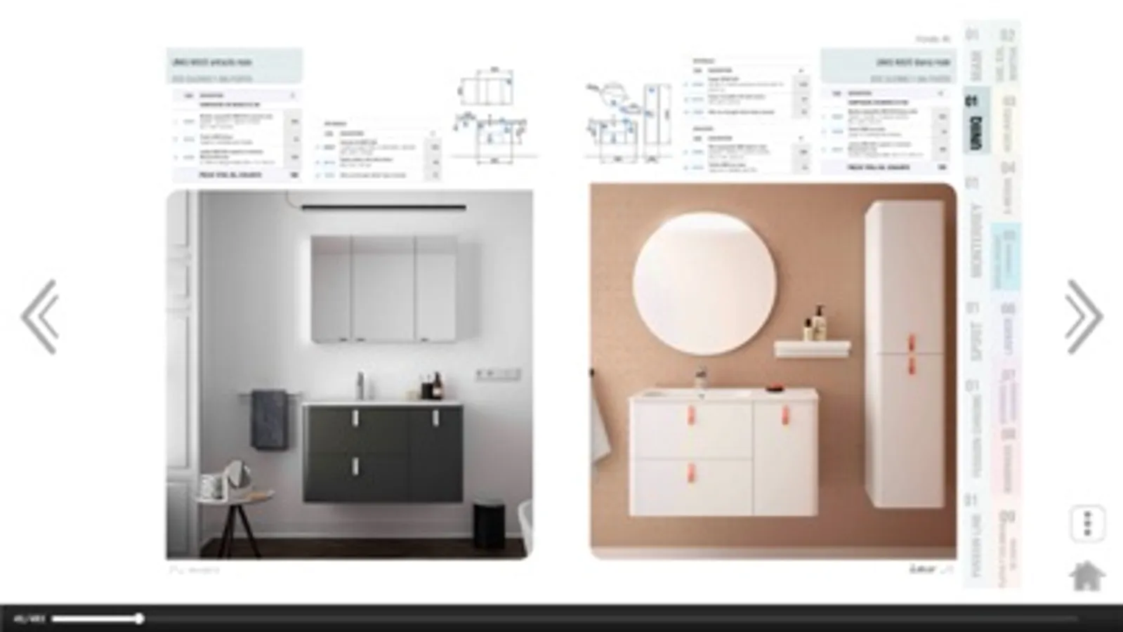 El usuario puede seleccionar entre varios catálogos, interactuar pasando páginas, cambiar materiales en las fotos y volver a los otros catálogos de forma interactiva.