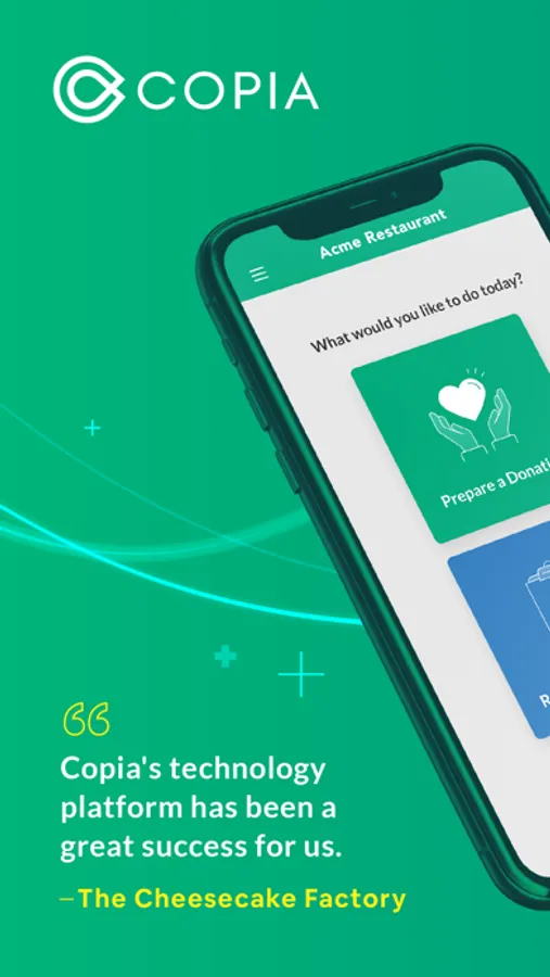 Did you know we waste 3x more food than there are mouths to feed? Copia helps businesses like yours reduce food waste while feeding the local community. Businesses use Copia to track edible and non-edible food waste and schedule pickups of their edible surplus for donation.