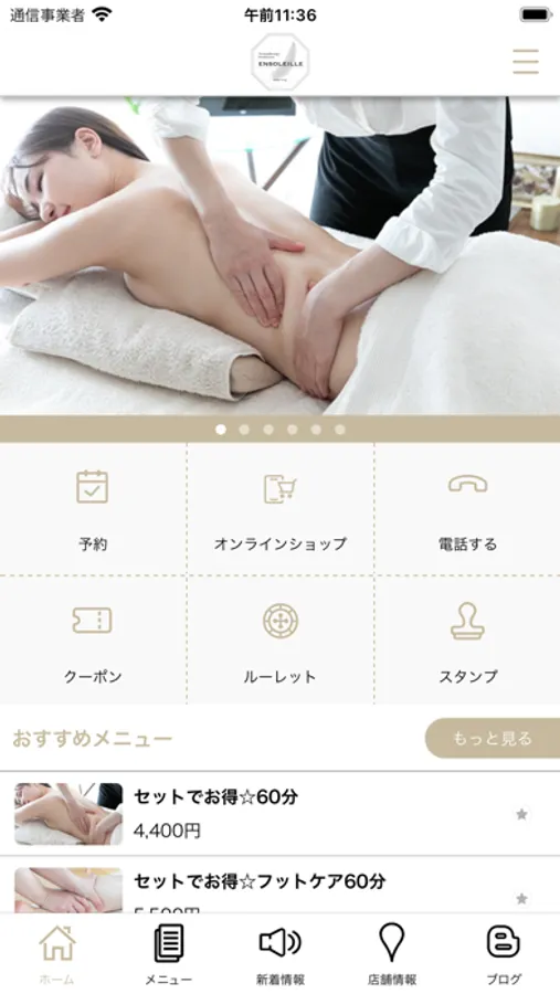 【ENSOLEILLE】の公式アプリが登場。アプリを通して『ENSOLEILLE』の新着情報やお得な情報をリアルタイムで受け取ることができます。また、いつでもお手元のスマートフォンから、メニューやご希望のお時間帯のチェック・ご予約などが可能です。アプリをインストールしていただくことにより『ENSOLEILLE』を、より便利に身近にご利用していただけます。