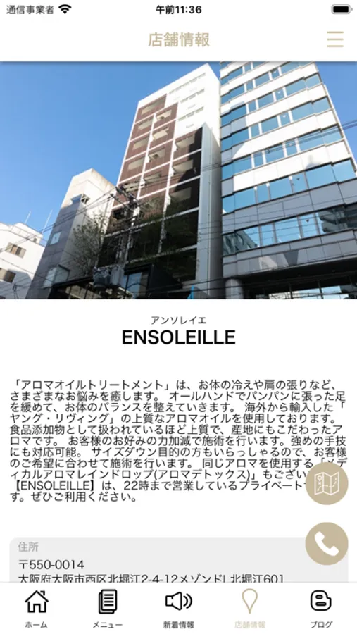 店舗のマップが表示され、地図アプリとも連携しているので、初めてのご来店の時も簡単に見つけることができます。