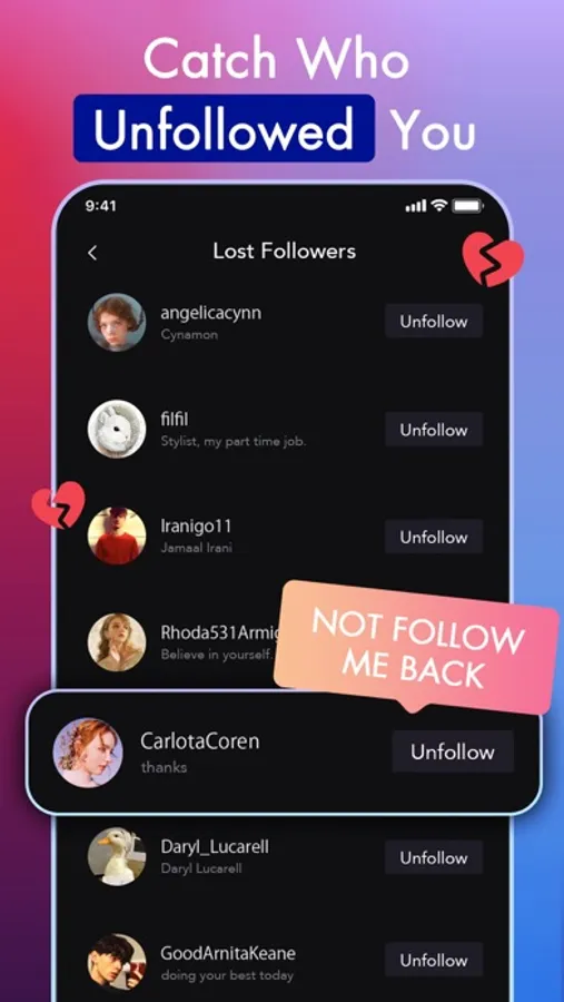 - You can view the persons who have been unfollowed you and someone who has not followed you back.