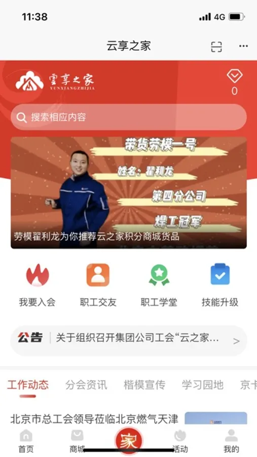 “云享之家”APP是服务北京燃气集团工会会员的服务平台,会员可通过它了解工会最新资讯动态,参加职工活动,参与在线学习,技能提升,并提供法律和心理咨询服务。是集职工交友、互动交流、普惠商城等业务于一体的线上服务平台。