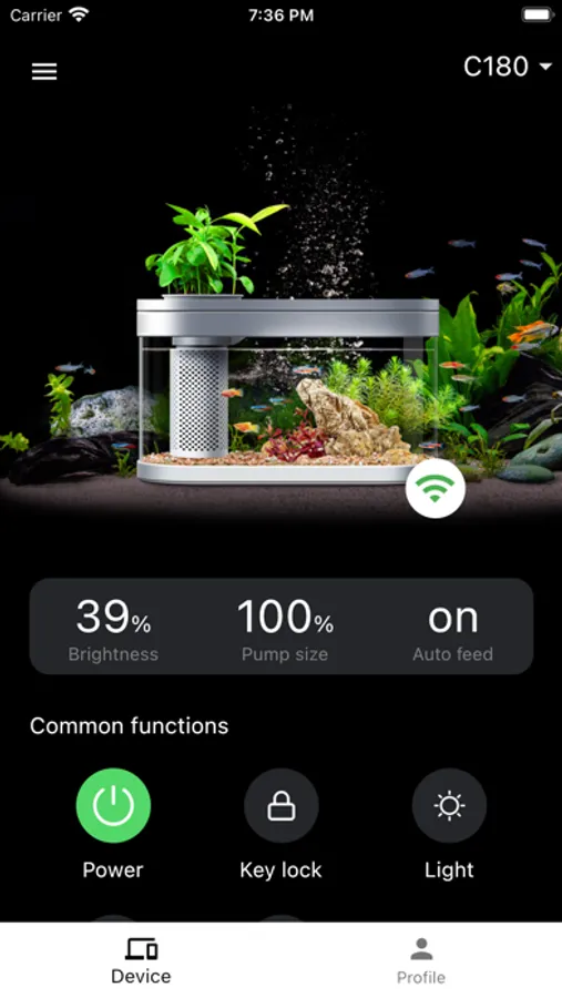 Through the APP, the flow rate of the water pump can be adjusted, and then the oxygen content entering the fish tank can be adjusted. When feeding the fish, you can turn off the water pump with one key, or reduce the speed of the water pump.