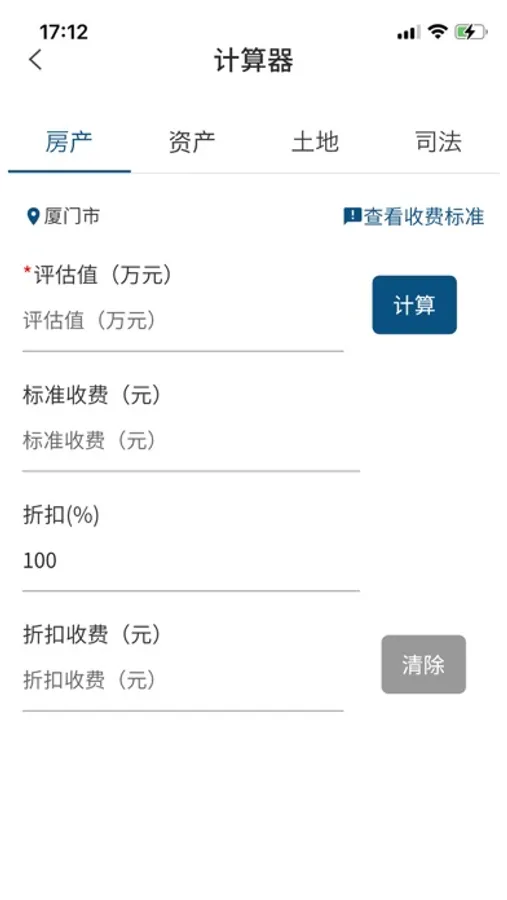 4. 评估费计算:支持计算房地产、土地、资产项目收费。