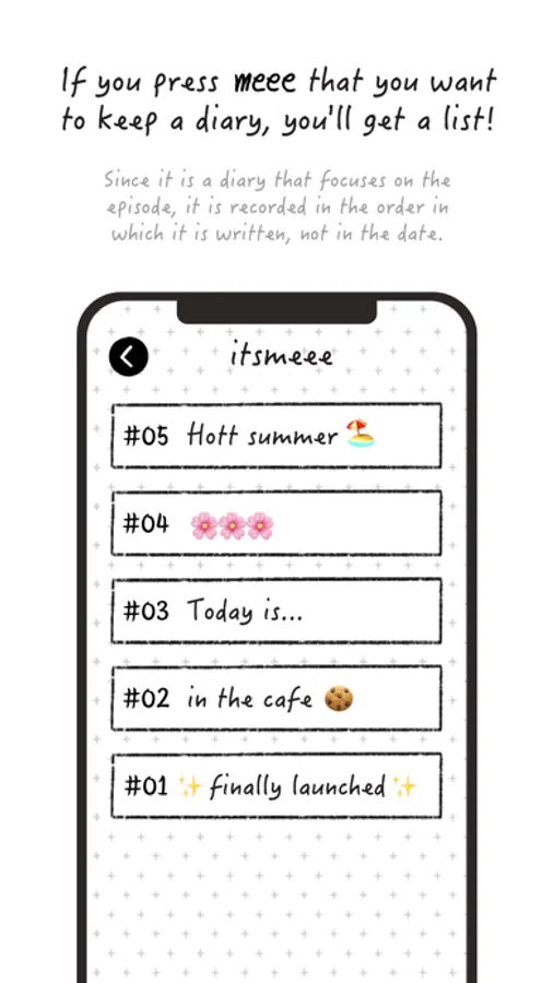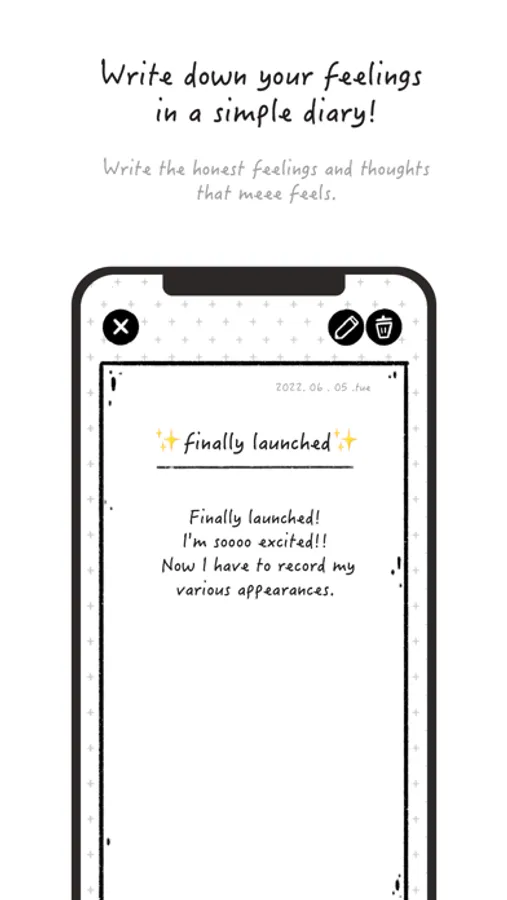 - Tap mee to go to the diary screen.