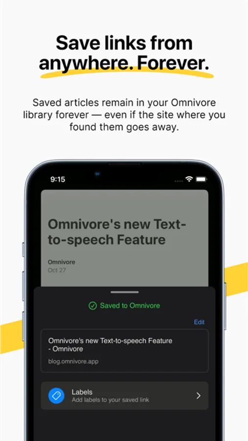 Omnivore for iOS reads web pages, PDFs, and newsletters aloud in natural AI-generated voices.