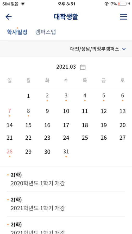 - 모바일신분증, 학사일정, 캠퍼스맵