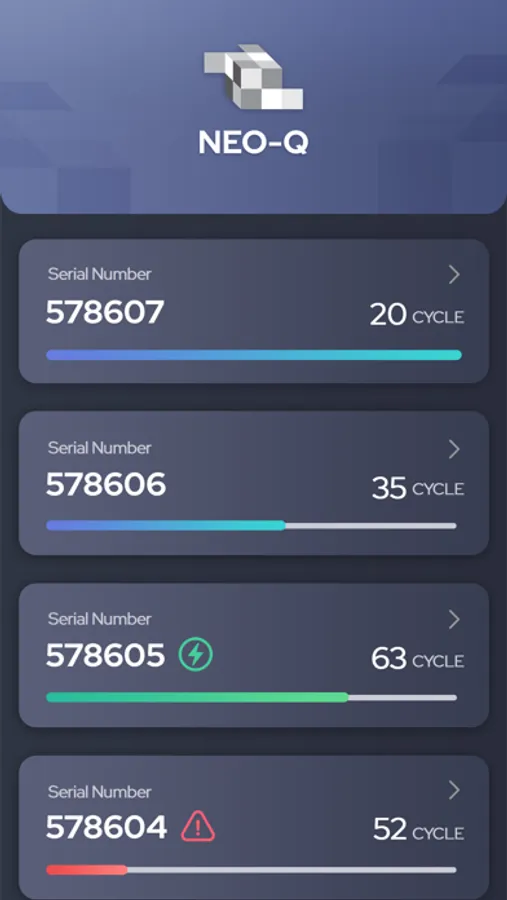 NEO-Q(E) 어플리케이션은 반경 3~4m(또는 BLE 통신 가능 구역)의 모든 “네오Q ENG 배터리” 제품을 탐지하여 사용자가