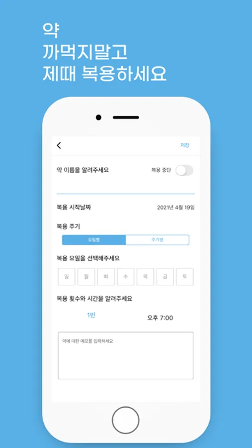 실제 약을 복용하라고 문구가 오는 것이 아닌 나만 알아볼 수 있는
