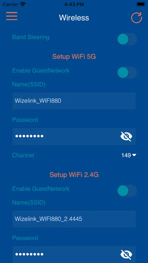 2. Users can use APP to set 2.4G WiFi, 5G WiFi, LAN and WAN settings.