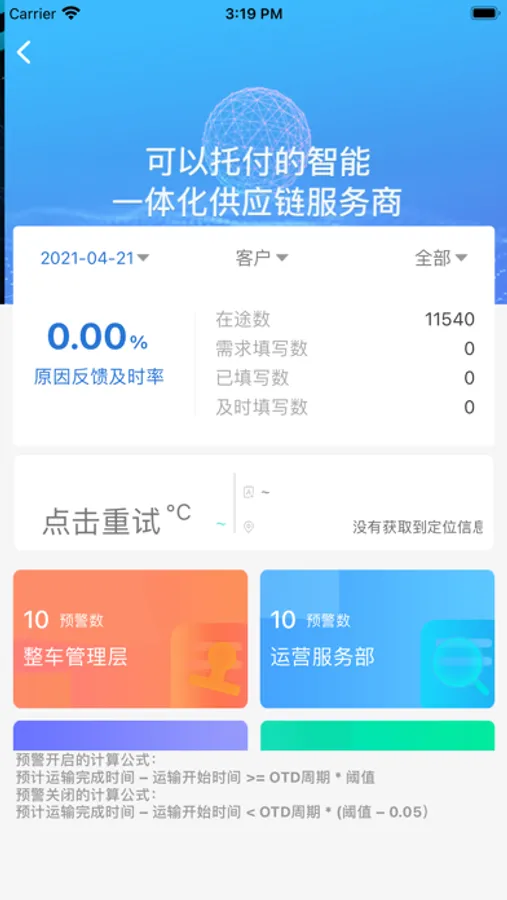 司机管家管理端是安吉物流为运输公司管理人员开发的移动办公软件, 可以让运输公司人员更方便的查看司机在途信息,同时更快的接收司机在途预警、质损等信息,方便公司更好的管理。