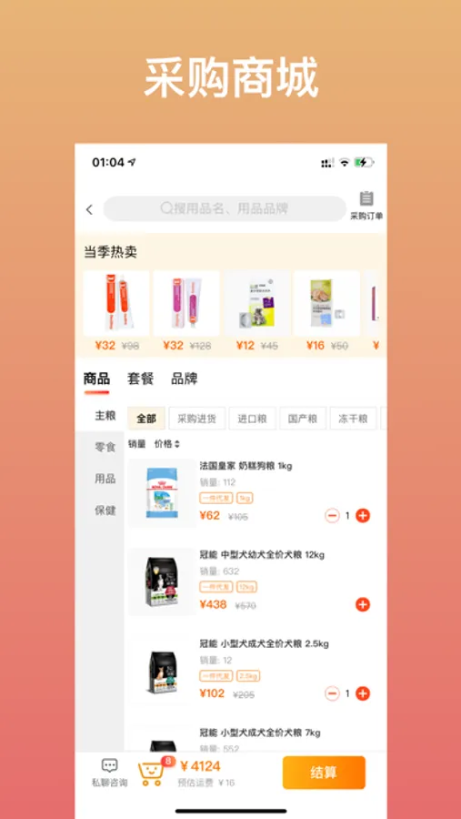 商城提供高性价比的猫粮、狗粮、零售玩具、日用洗护、保健医疗等,为新养宠人群提供一站式服务。