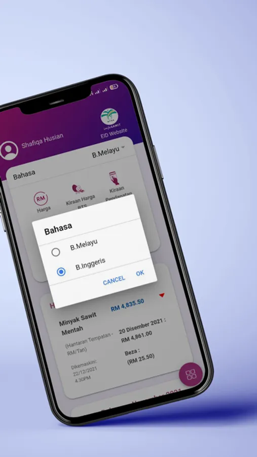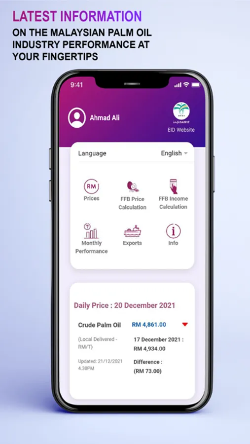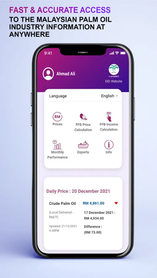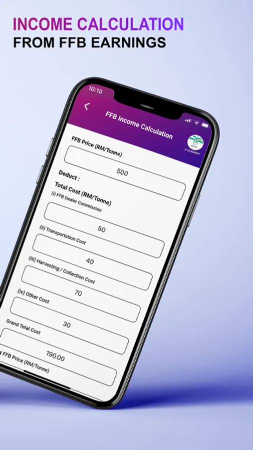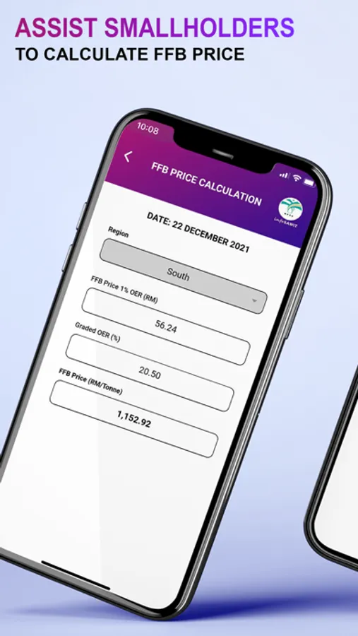 This application facilitates smallholders and FFB dealers to get the information easily on daily FFB price and income calculation generated from FFB produce hence increase smallholders’ bargaining power and promotes transparency in FFB pricing.