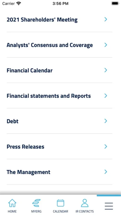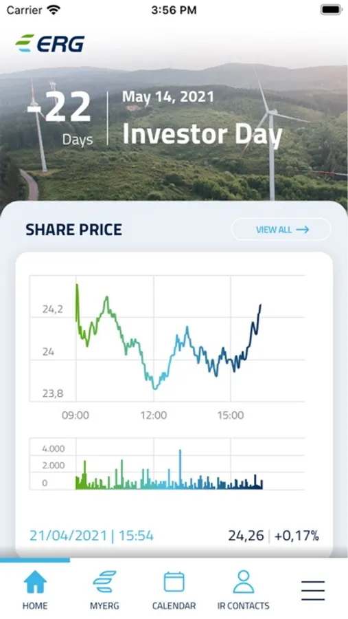 With the ERG Investor app you can get real-time updates on all of the Group’s main financial information: its daily share price performance, financial calendar, strategy, press releases, reports and presentations. Thanks to the app it is also possible to watch live streams of investor meetings and interact with the speakers via a messaging system active during live events. The app also includes a push notification service so users can stay up to date on the availability of new documents.