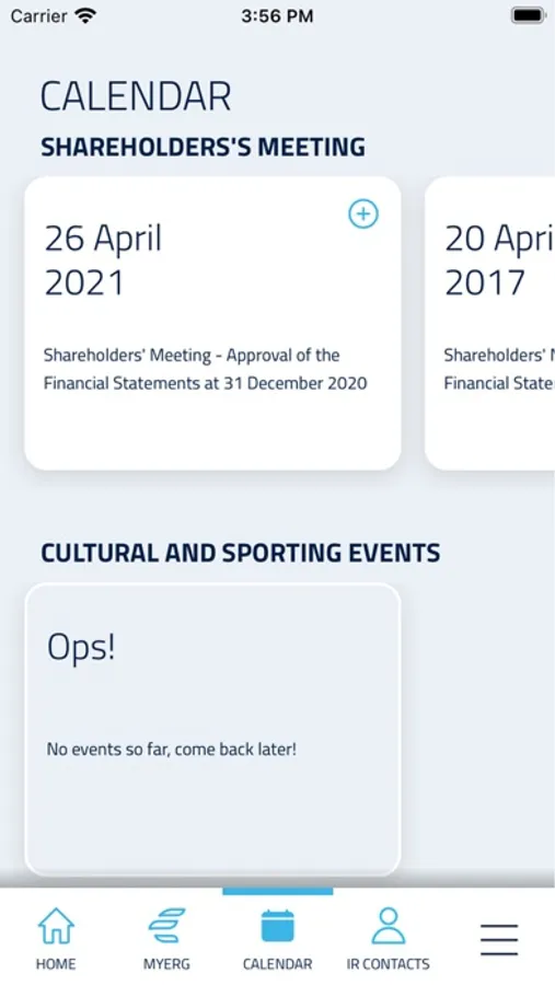 Finally, by registering with MyERG it will be possible to save documents and appointments in the calendar of your personal area.