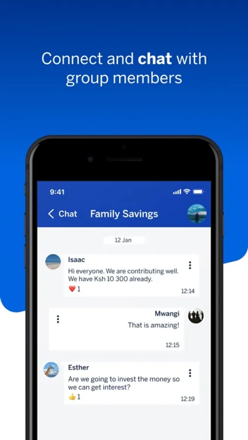 The Chama app has inbuilt, real time chat. The chat also has a polls feature which allows the group to vote on important decisions.