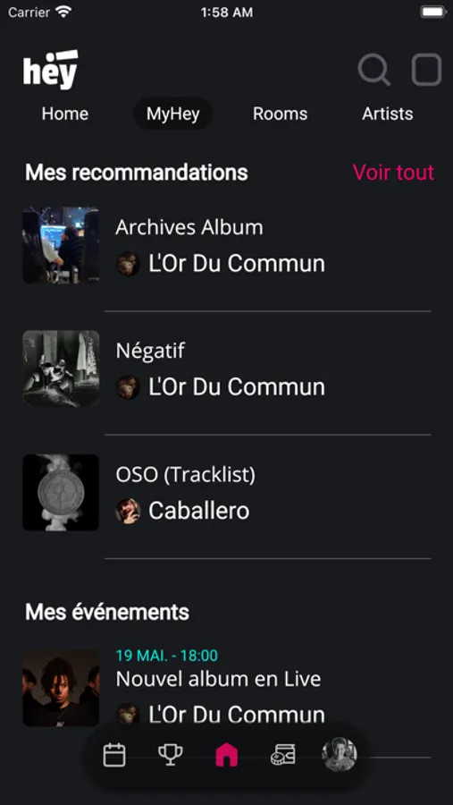 hey! est une application gratuite dédiée aux artistes musicaux et leurs fans.