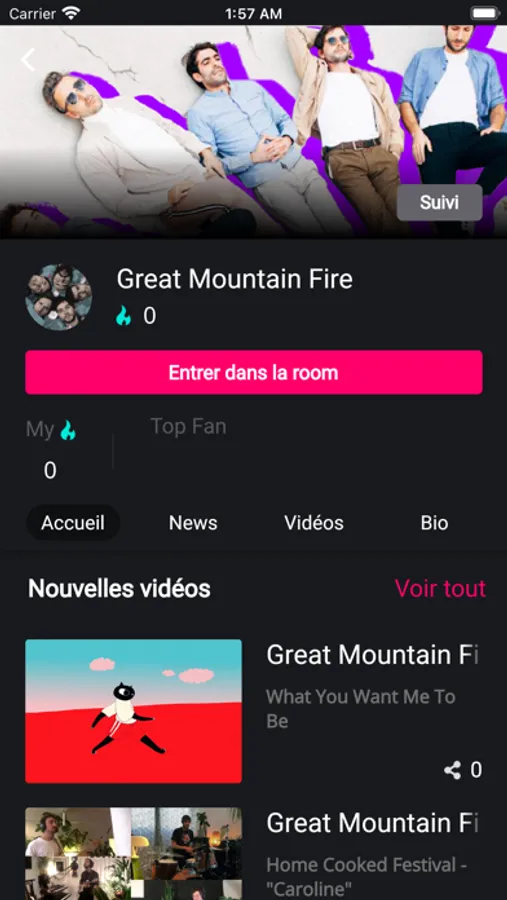 Retrouvez aussi pour chaque artiste, une chat room réservée pour dialoguer 24H/24 de celles et ceux qui vous passionne, ces “rooms” sont directement connectées aux artistes qui peuvent intervenir à tout moment.