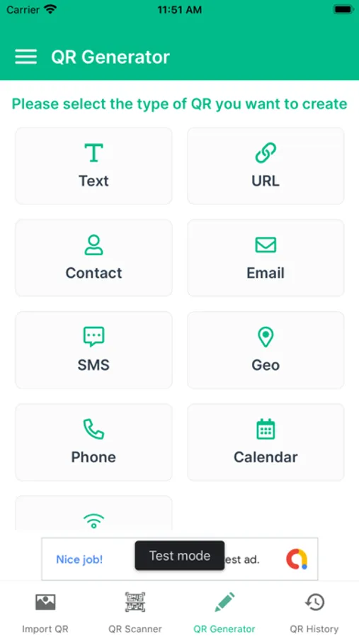 Once you download, you have access to create QR Codes below information: