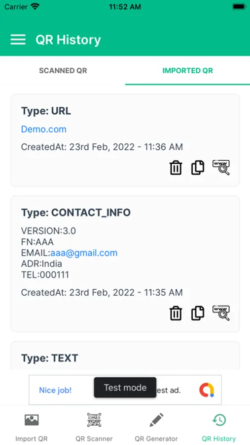 But that's not all! Our app also lets you import any barcode or QR code from your phone, allowing you to get instant scan results and store your scans and imports for future reference. Plus, our app also features a comprehensive scan and import history, making it easy to keep track of your codes and your scanning activity.