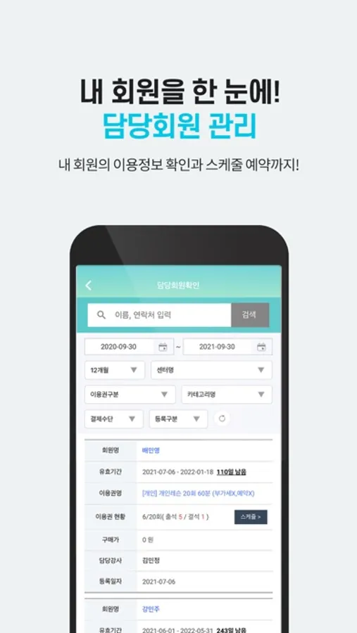 -담당회원 관리로 내 회원의 이용정보 확인과 스케줄 예약