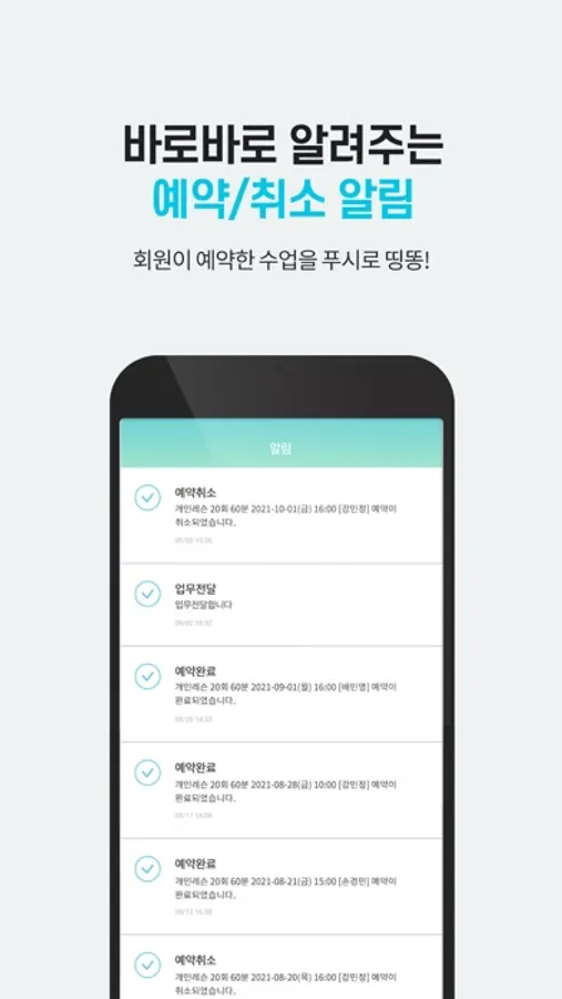 -수업 예약 및 취소 푸시(PUSH)알림 및 예약 수업 하루 전 알림 기능