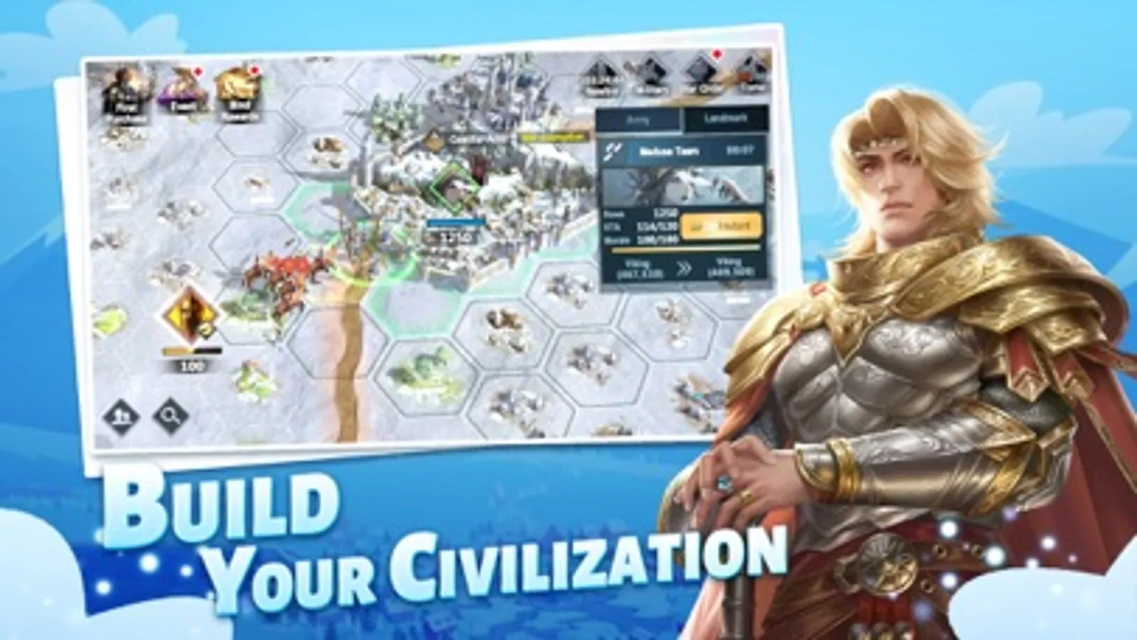 Recruit hundreds of legendary heroes to lead your troops and govern your cities. From Athena and Thor, to Horus and Moneky King, you can recruit heroes from legends around the world. Gain experience through battles, pick skills that suit your style, and create an unique powerful hero.