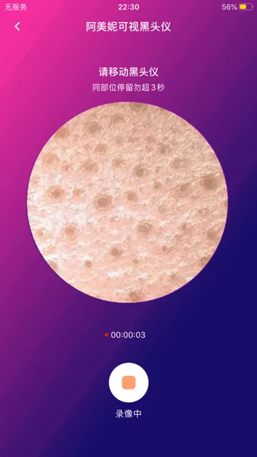 IMATE App establishes communication with the visual blackhead meter by connecting to the Wi-Fi of the visual blackhead meter, and obtains the pictures taken by the blackhead meter in real time, and can record pictures and videos for saving and sharing.