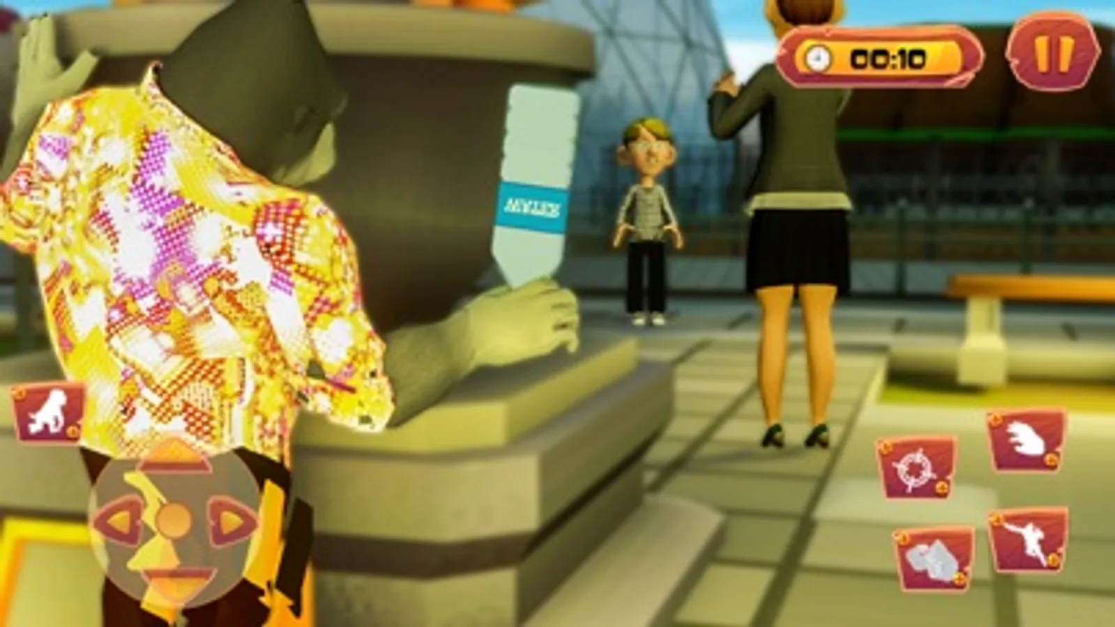 Its time to take ride down the memory lane and experience the joy as gorilla prank master. The Park management purchase a funky gorilla to amuse the kids and people who visit the Zoo on daily basis, but this gorilla prank master is so smart who tries to make annoy people and perform different pranks. In this scary gorilla prank master and naught pranks parks in the zoo game help this funny gorilla to perform pranks and jokes with the park visitors and kids. This is the survival game as well where you have to escape from the park management, when you performing pranks with kids be careful from park management because park management will caught you and cage your gorilla. Have blast fun with scary gorilla prank master to enjoy from the naught and playful acts. This gorilla pranks master had an evil mind and decided to take advantage of it and planned to play tricks on park visitors.