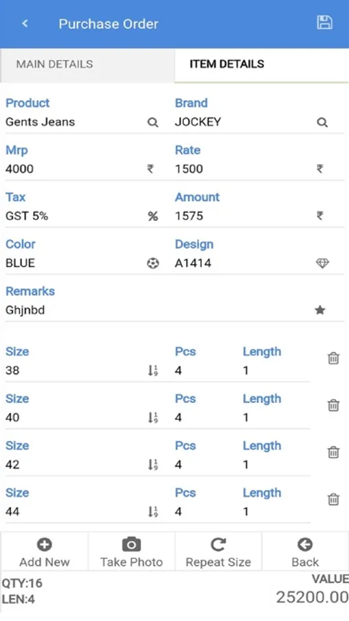 This App is for Garment Retailers for generating purchase order in hand and taking photos of products immediately.