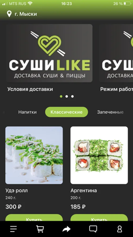 В нашем приложении вы можете заказать доставку еды домой и в офис.