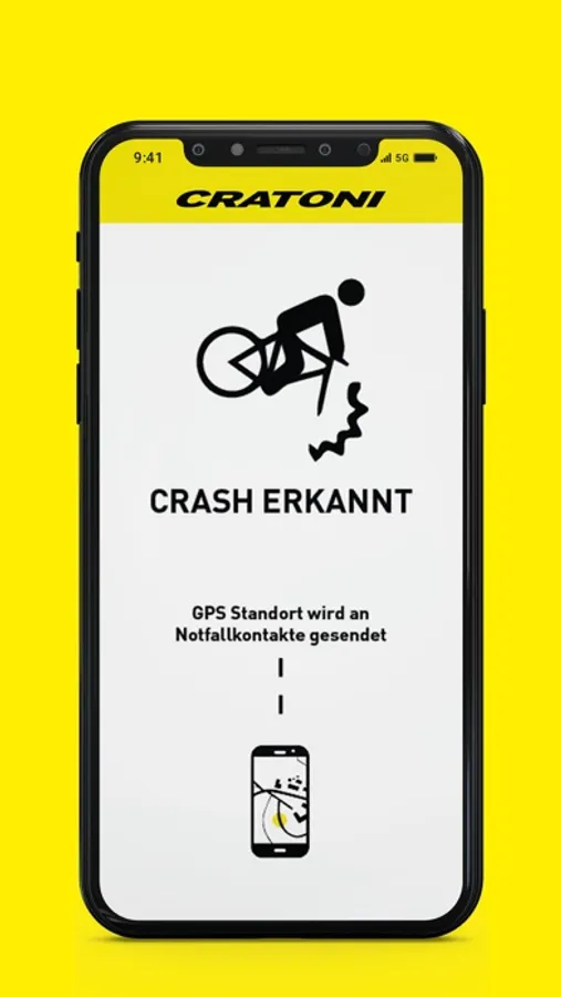 Der eingebaute Crash Sensor enthält Sensoren zur Messung von Kräften, die bei einem Sturz auftreten können. Sobald ein möglicher Sturz erkannt wird, kommuniziert der Crash Sensor mit Ihrem Smartphone und sendet Ihren Standort per SMS an Ihre eingerichteten Notfallkontakte.