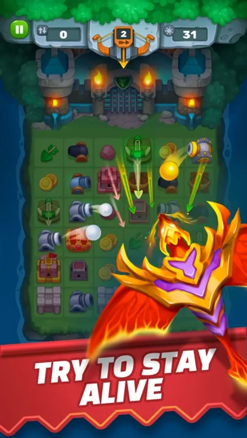 Defend your castle by merging resources. Combine them to get new objects. Every such item has unique protective functions!