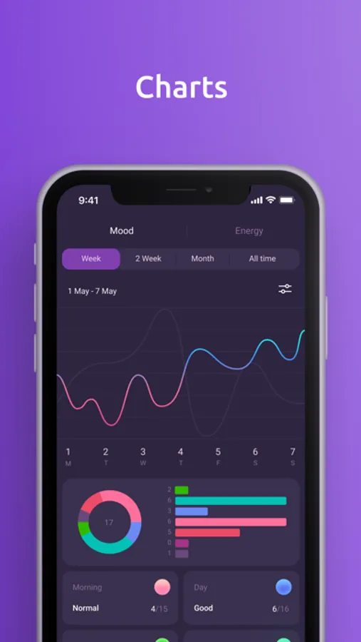 Track your mood, energy, feelings, and events with Mind Tracker. Make notes and determine how different events affect your well-being, when you're in your best state, and when your mood declines. The app will clearly show what influences your well-being in the moment and in the future.