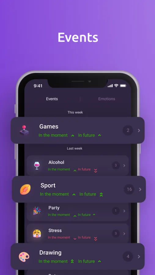 4. **Evaluate the impact of events**: Mark events, and the app will automatically suggest which events have the most significant impact on your well-being and future mood.