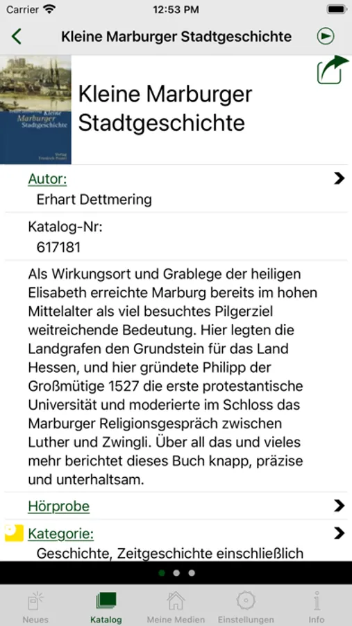 Mit der App blista Leselust kann man Hörbücher der Deutschen Blinden-Bibliothek per Download ausleihen und direkt anhören. Ist man unterwegs und möchte die Hörbücher nicht laden, kann man sie streamen. Hörbücher als CD und Bücher in Blindenschrift können bestellt werden, sodass man sie dann per Post zugeschickt bekommt. Die vorhandenen Kataloge lassen sich komfortabel nach unterschiedlichen Kathegorien durchsuchen, und man kann in den Neuerscheinungen stöbern.