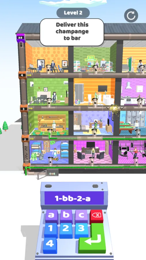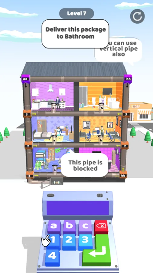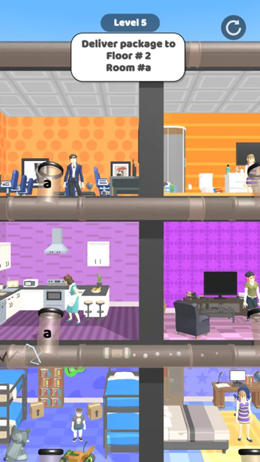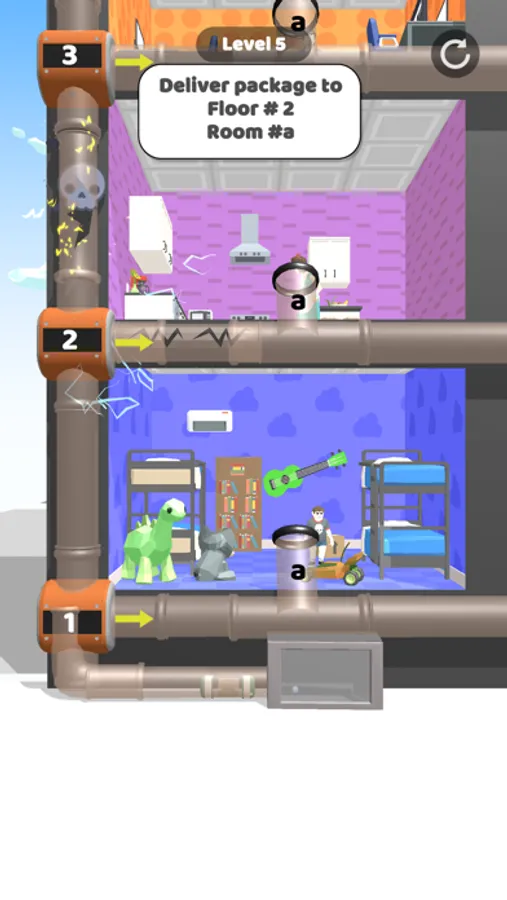 Deliver package to right room with Pneumatic tube mail system. Check the package, try to find correct room and deliver it with pipe system.