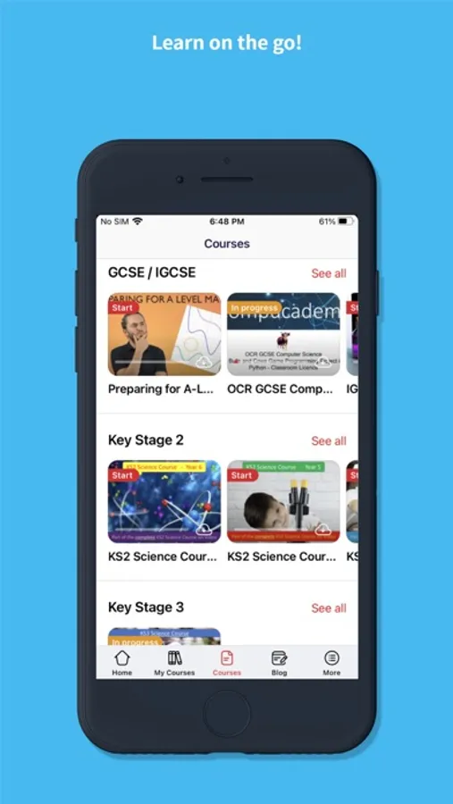 Through the educ8all app, you can get access to an array of video courses and more to help you study in line with Key Stage 2, Key Stage 3, GCSE and A Level specifications. Most courses are video-based although some are text-based. Many courses contain quizzes for you to test yourself. Many courses can also be downloaded to your device for you to be able to continue learning without a data connection (quizzes are not functional offline, however).