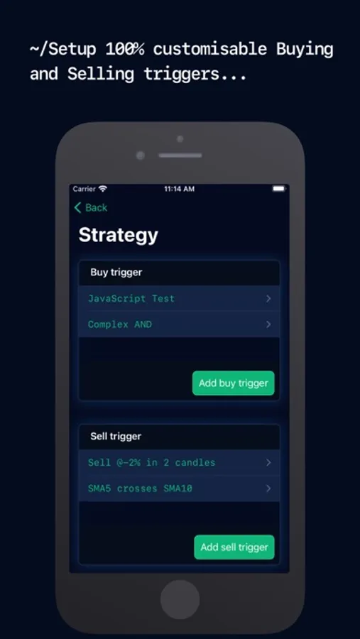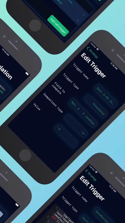 This app allows you to configure many different buying and selling triggers to compose your very own crypto strategy. From the simplest threshold trigger to much more complex average comparisons, Coiner can adapt to all kinds of users, even to developers who wish to write their own custom triggers using JavaScript!