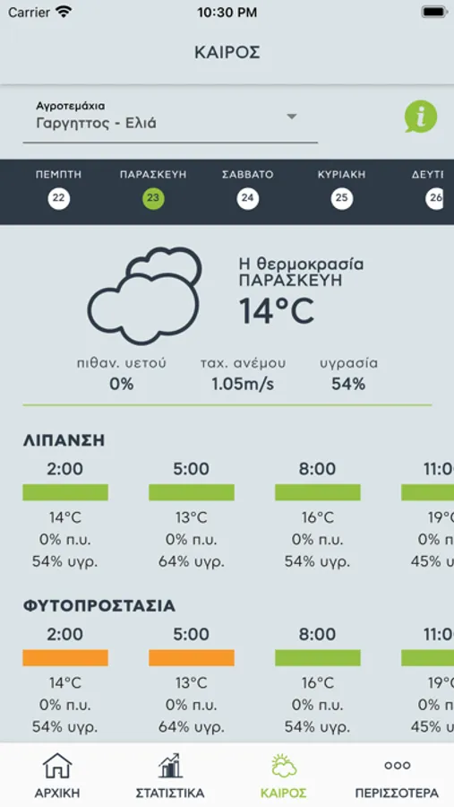• Πρόγνωση καιρού, με κατεύθυνση καλλιεργητικών εργασιών