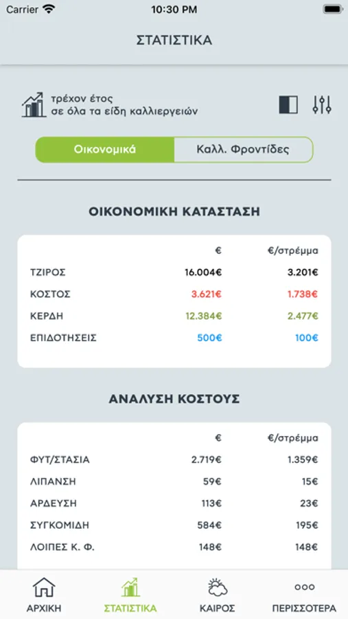 • Συγκριτικό ιστορικό οικονομικών και καλλιεργητικών στοιχειών σε βάθος χρόνου της επιλογής σου.