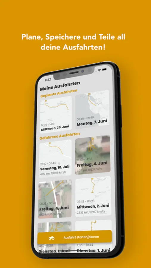 Routen können entweder geplant oder sofort gestartet werden. Während der Fahrt wird über GPS deine Bewegung aufgezeichnet und du kannst auch Fotos oder Emojis zu einem bestimmten Standort posten.