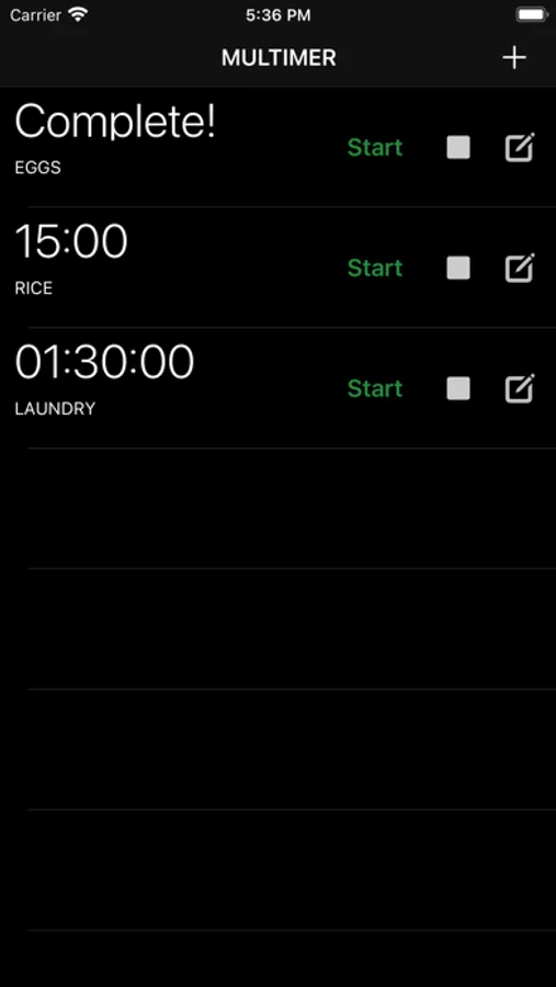 MulTimer is a simple application for creating multiple timers. You can easily create timers for different duration and names. Timers can be started at the same time. Every timer can also be edited: change the name and duration or delete timer.